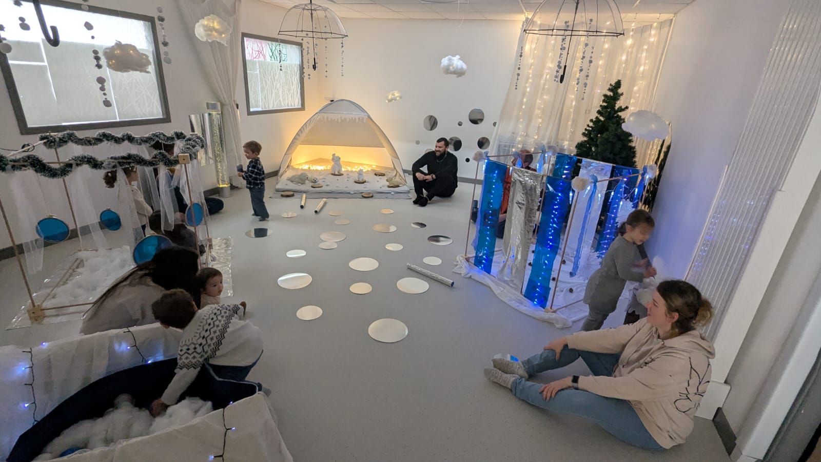 Banquise, forêt et animaux d’hiver, neige en coton, jeux de miroirs et de lumière… après l’atelier d’automne, les enfants ont exploré un univers à l’allure d’un conte merveilleux.