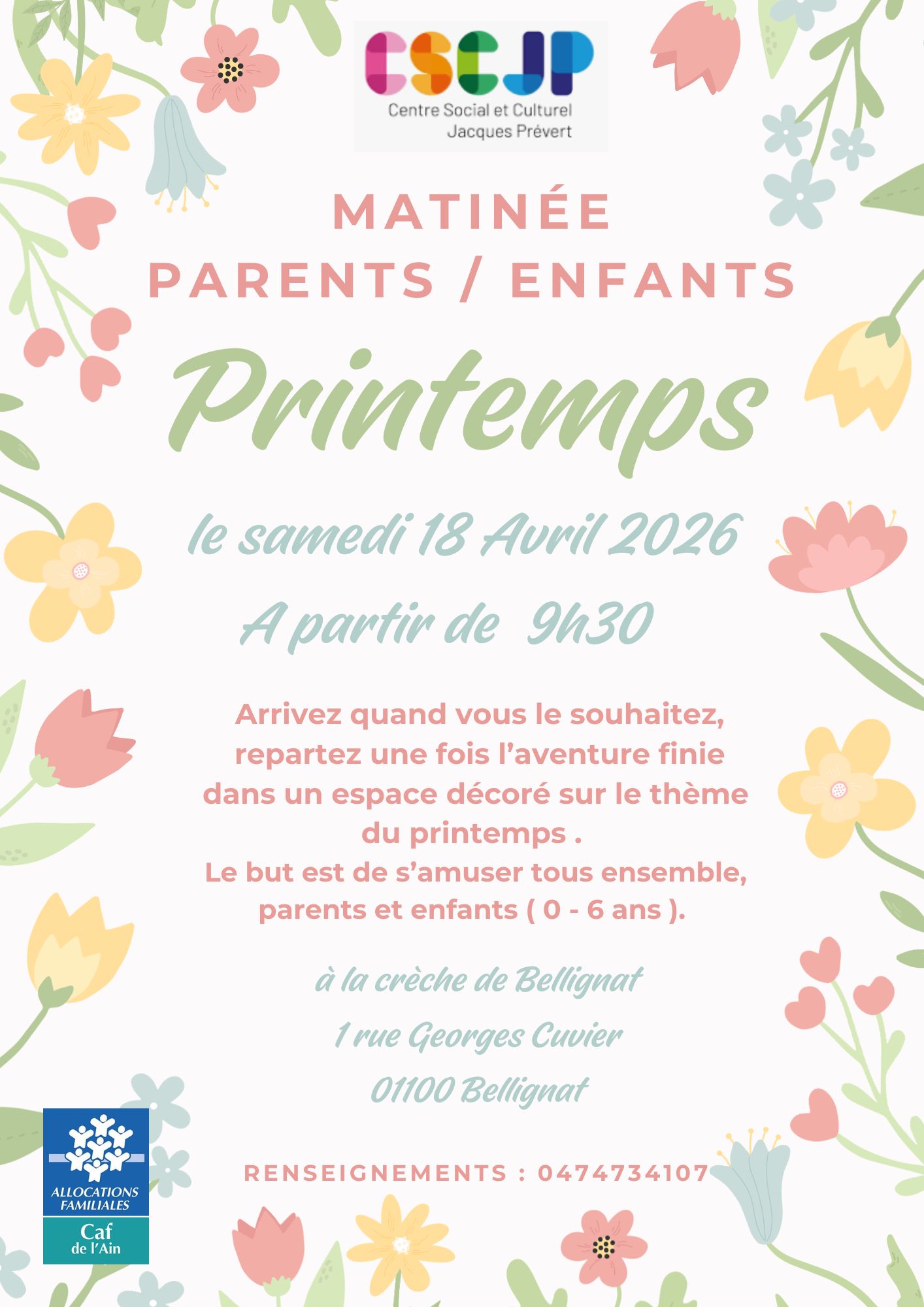 Le secteur Petite Enfance du CSCJP organise un atelier parents – enfants pour faire des décors sur le thème du printemps.