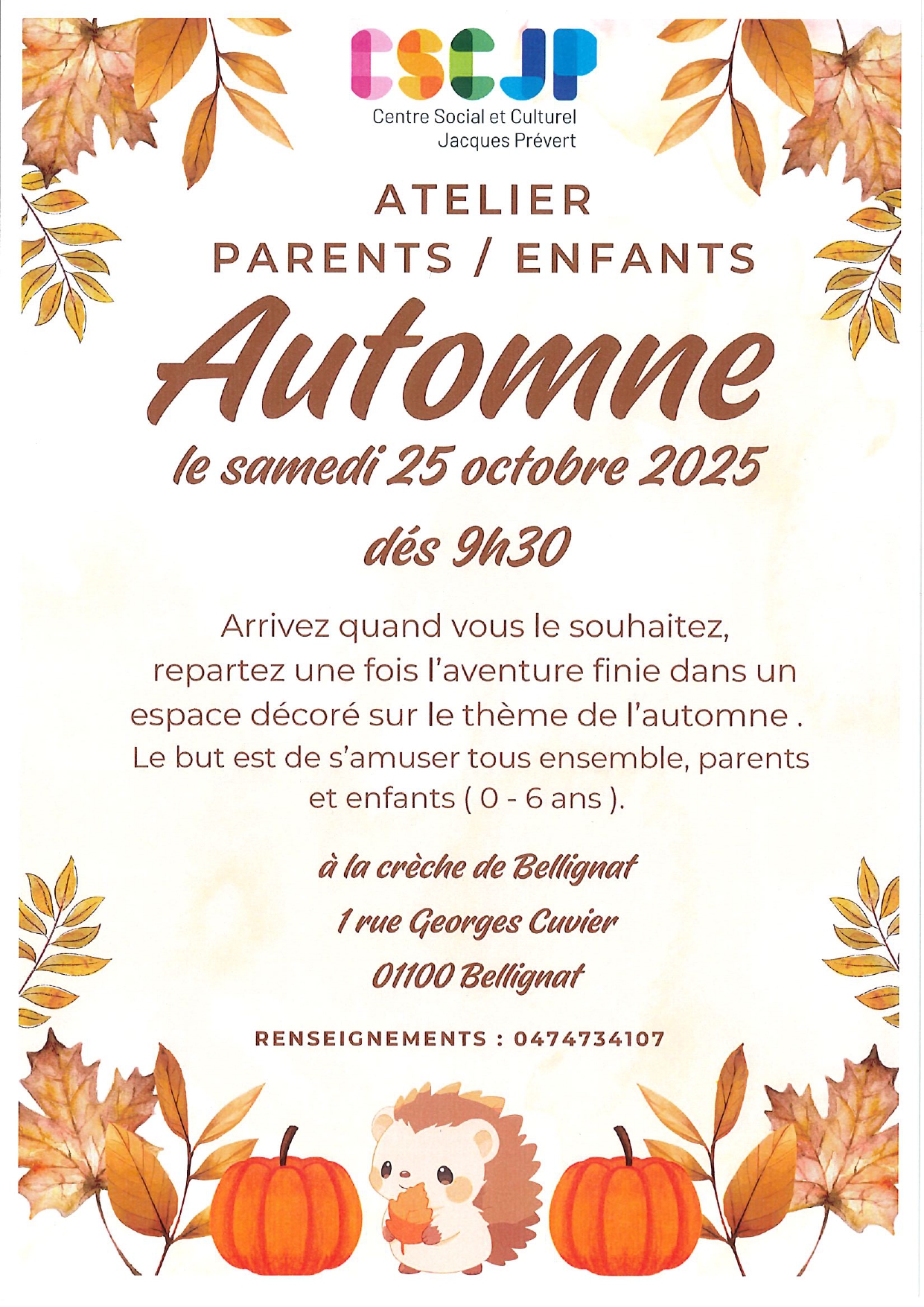 Le secteur Petite Enfance du CSCJP organise un atelier parents – enfants pour faire des décors sur le thème de l’automne. C’est ouvert à tous et gratuit, et surtout en libre accès !! Alors rejoignez nous le samedi 25 octobre dès 9h30 pour partager un moment avec vos petits loups !