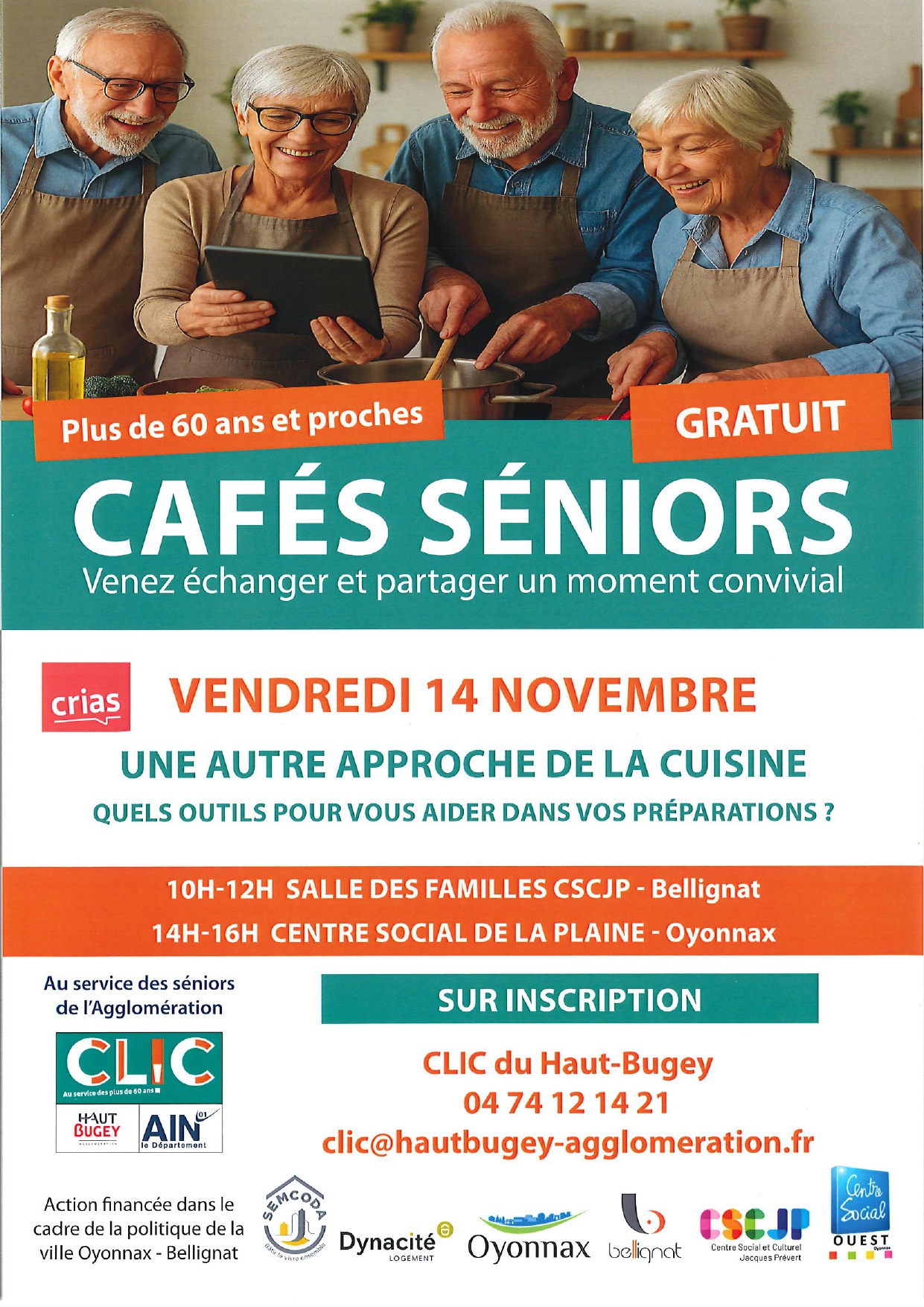 En savoir plusLe rendez-vous mensuel est fixé, le CLIC organise un nouveau café seniors le vendredi 14 novembre pour les plus de 60 ans et proches dans le but de découvrir les activités de 2025 ! Inscription obligatoire Le thème du mois : une autre approche de la cuisine. Deux sessions sont organisées : • À Bellignat […]