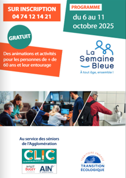 Pour la quatrième année consécutive, Haut-Bugey Agglomération met en place une Semaine Bleue sur son territoire, du 6 au 11 octobre 2025. Tout au long de ce temps dédié, organisé par le CLIC du Haut-Bugey, de nombreux ateliers et animations sont programmés dans les 11 communes engagées. Autant de moments privilégiés pour informer et sensibiliser […]