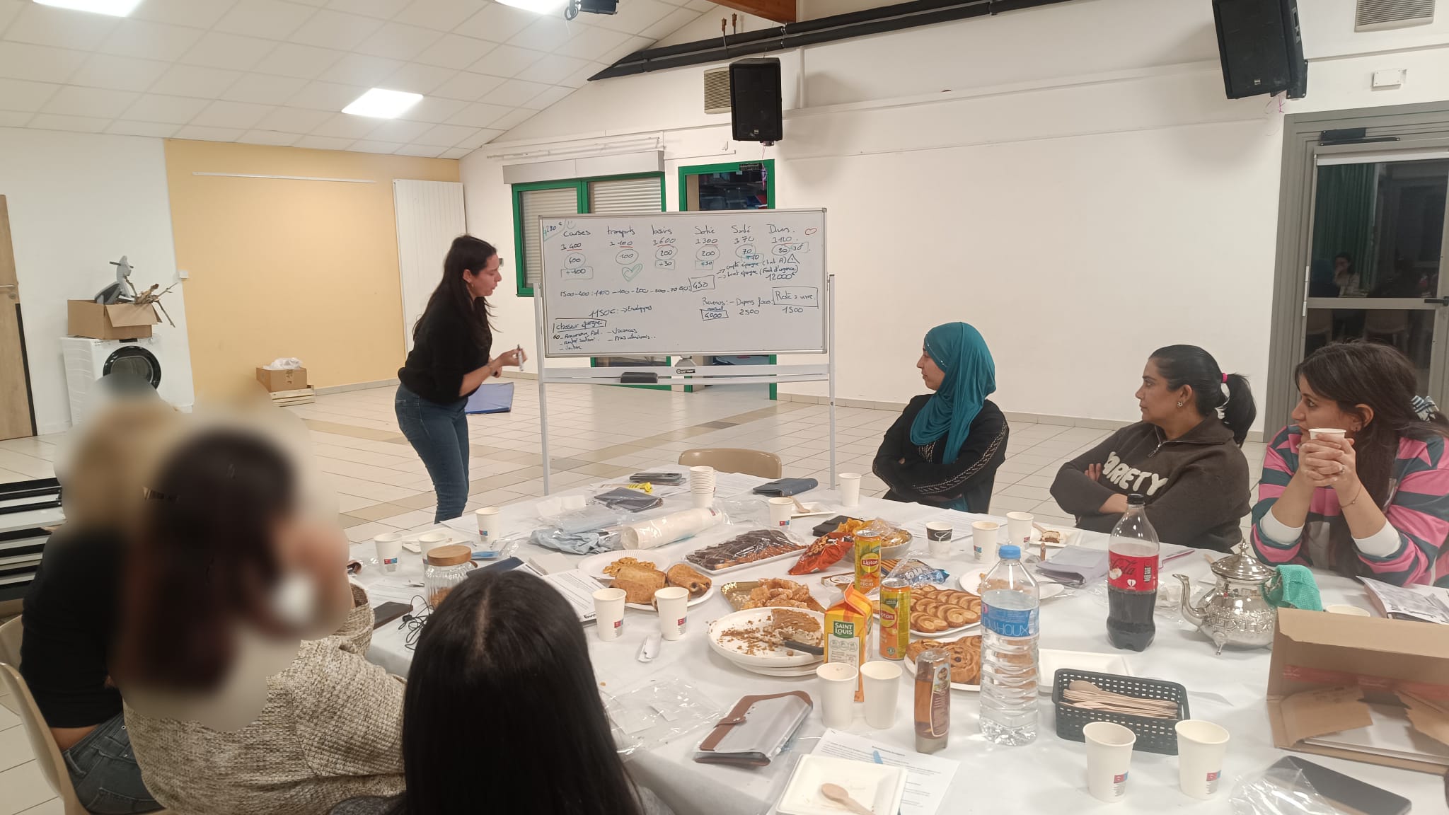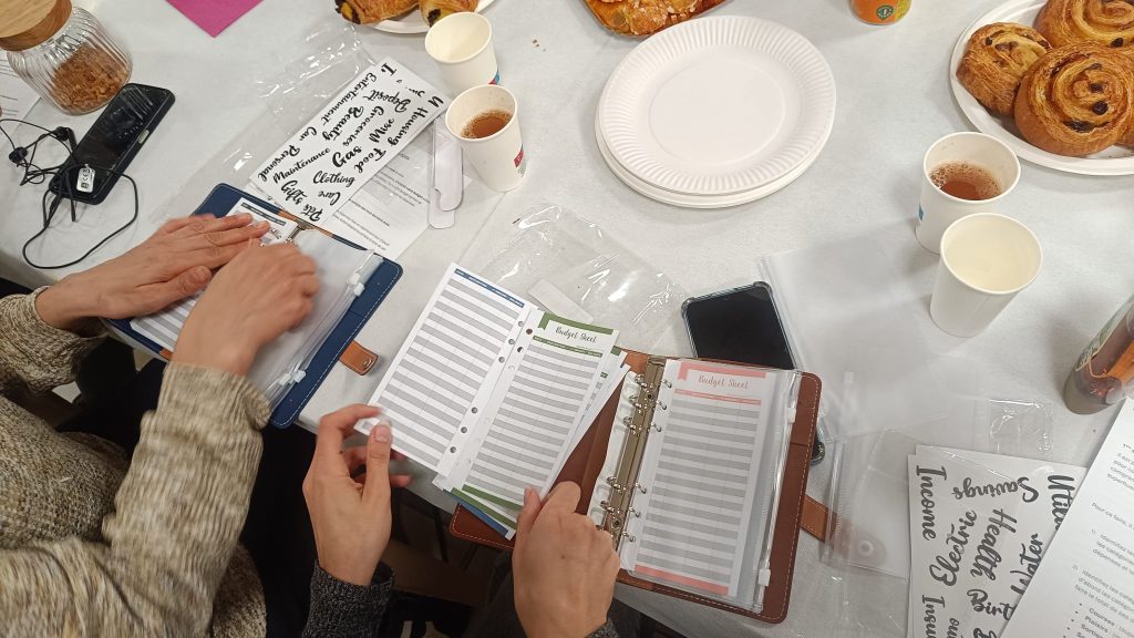 Elles ont découvert la méthode des « enveloppes budget » autour d’un repas partagé, grâce à Laura, de la Sauvegarde et Olfa, du CSCJP.
