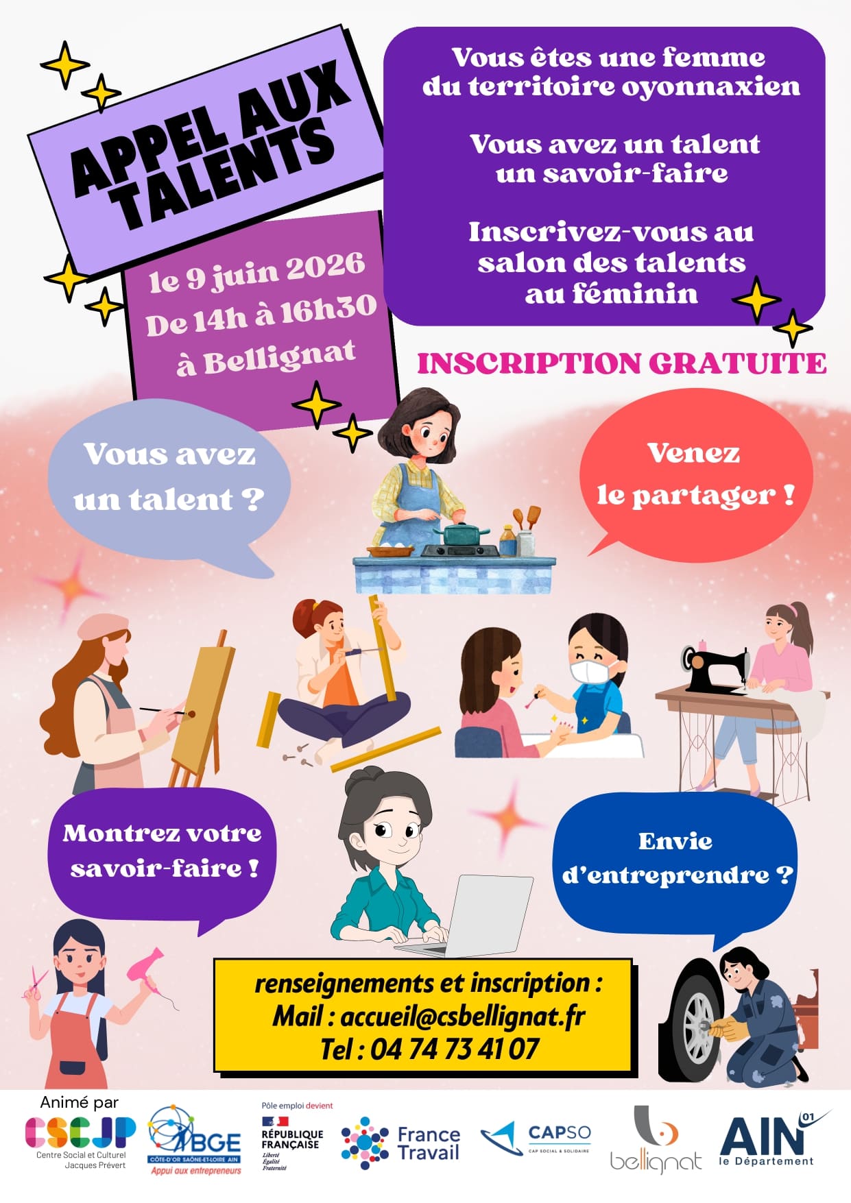 | Renseignements et inscription : accueil@csbellignat.fr |