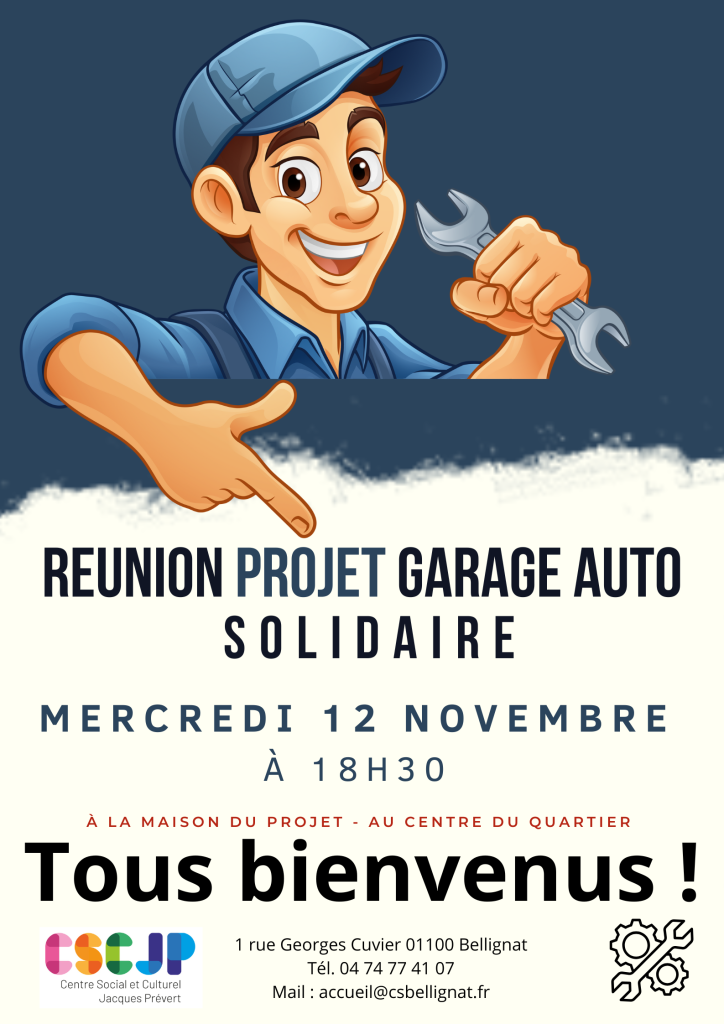 Le CSCJP a le plaisir de vous inviter à une réunion d’échanges autour d’un projet de garage solidaire au sein du quartier.